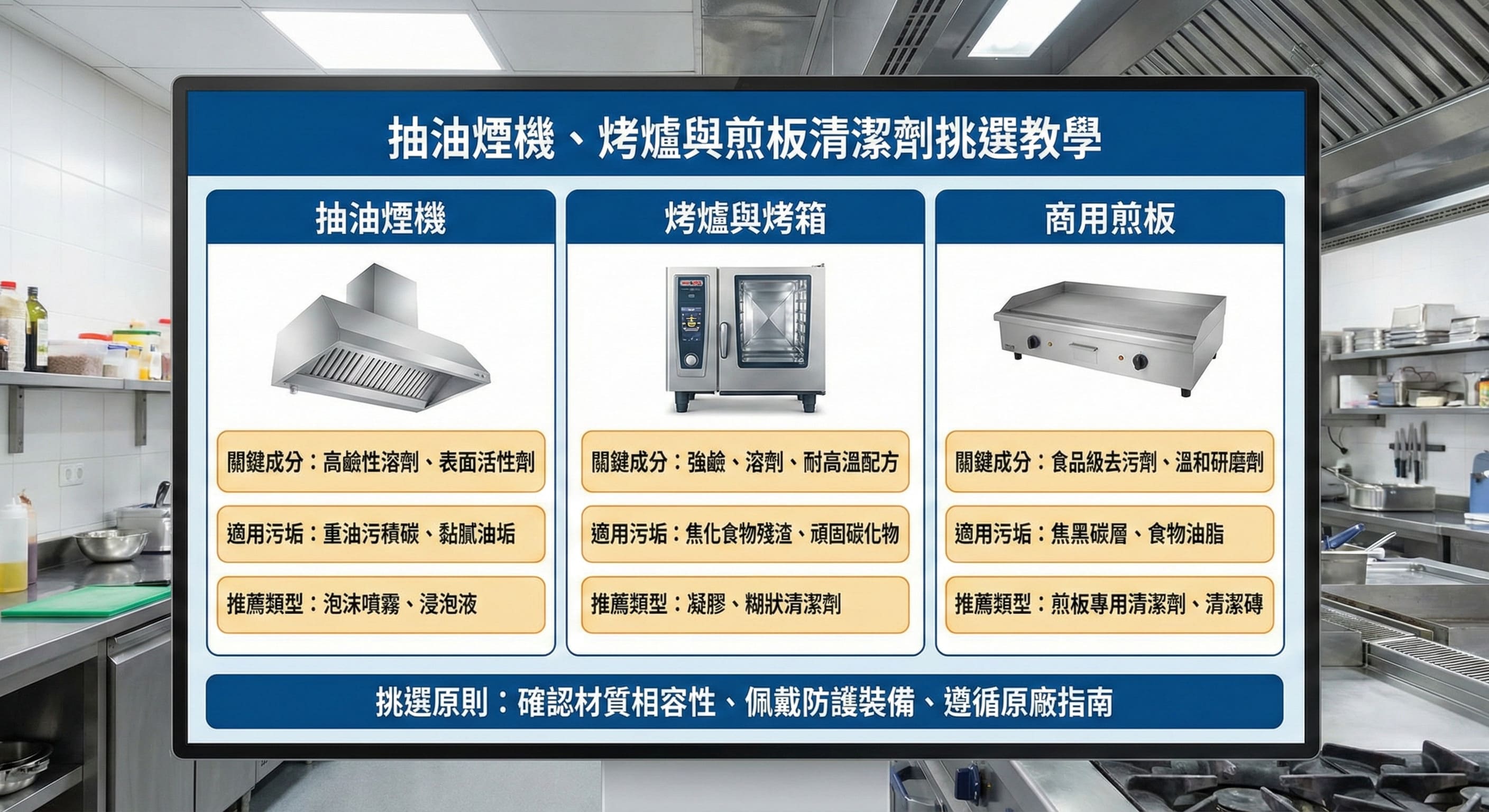 【商用重油污救星】抽油煙機、烤爐與煎板清潔劑挑選教學,廚房除焦不傷機的終極指南